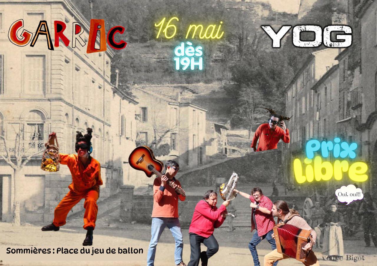2ème concert du Jeu de Ballon avec Yog et Garric Retenez votre soirée du 16 mai à Sommières Ça va dépoter, bouléguer, danser… On pourra manger et même s’abreuver Les papets, les minòts, totis ensems Garric Yog